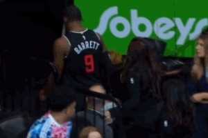 受伤了!巴雷特与锡安争抢篮板受伤 返回更衣室
