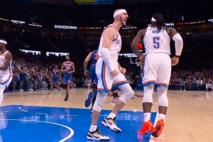 卡位大于身高!卡鲁索篮下硬刚唐斯抢板成功 激情振臂怒吼庆祝