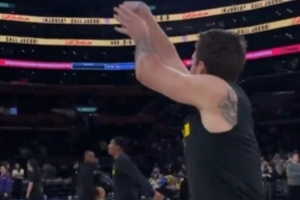 一场没打憋坏了!东契奇赛前训练连续命中logo三分