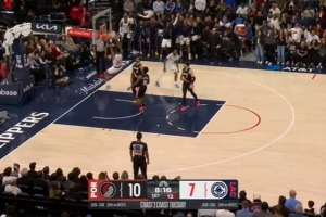 积极性拉满!小德里克·琼斯1抢2拼下前场板 助攻科林斯起飞暴扣