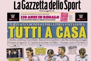 意大利无缘世界杯,意媒头版齐声哀嚎:全部回家!