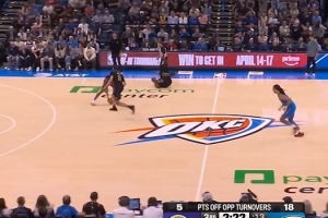 顶不住!布朗尼连续出现失误 雷霆反击将分差拉开到40分以上