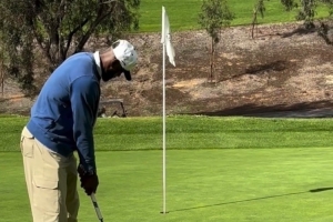 詹姆斯转发自己打高尔夫片段:错失近距离一杆入洞 面对镜头憨笑