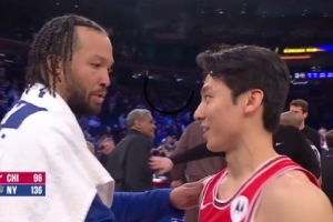 人缘确实可以!布伦森赛后与河村勇辉拥抱交流