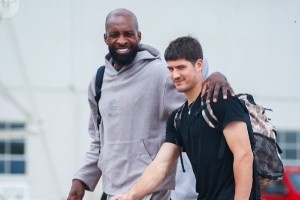 火箭众将登机照:杰夫·格林&谢泼德组CP 申京长衣短裤休闲风
