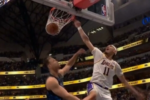 摧枯拉朽!詹姆斯送妙传 海斯起飞力压鲍威尔隔扣打成2+1