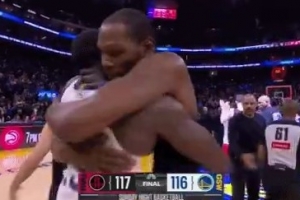 在你抱库里之前我先抱!追梦与杜兰特赛后深深相拥