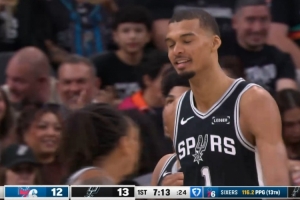 成人打小孩筐既视感!文班转身抹入内线 轻松暴扣打成2+1