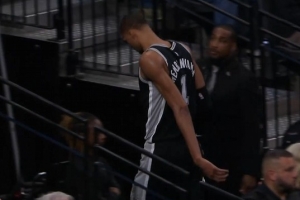 望无大碍!文班反击被乔治拉到手臂痛苦倒地 已返回更衣室