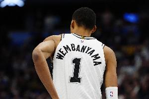 上半场比赛,文班亚马两次返回更衣室,退场前他出战15分39秒,11中7,三分3中1,罚球4中2砍下17分5篮板1助攻3盖帽,正负值+7。