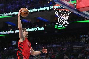 体育资讯4月7日讯 NBA常规赛,开拓者半场72-58领先掘金。