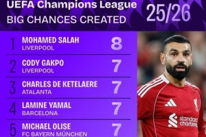 体育资讯4月7日讯 欧冠八强战将于今晚打响,数据机构squawka也统计了本赛季欧冠创造重大机会情况,利物浦3将进前十。