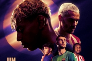 巴萨对阵马竞海报:亚马尔、霍安、库巴西、格列兹曼、卢克曼出镜