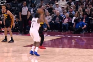 拿手菜!哈登后撤步三分造到杰伦·约翰逊犯规 后者犯满毕业