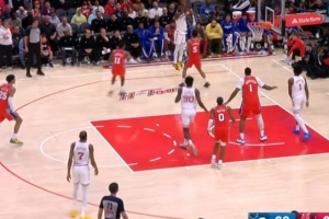 花得很彻底!阿门击地砸传助攻伊森底角三分球 火箭领先28分