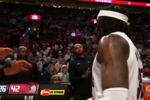 真是自信!罗威底角大空位三分稳稳命中 开拓者领先16分打停快船
