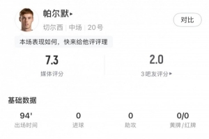 体育资讯2月26日讯 本轮英超,切尔西4-0圣徒,帕尔默全场数据: