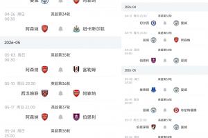 下周直接对话!争冠赛程对比:枪手剩6轮踢纽卡 曼城战切尔西维拉