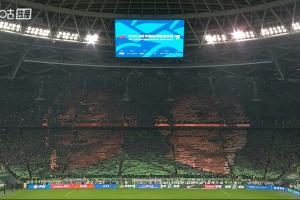 震撼!赛前国安球迷拼出巨型TIFO,展示法比奥+张玉宁头像