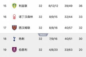 此战过后,利兹联积36分排名英超第十五,已经高出降级区的热刺6分,在仅剩6轮的情况下保级形势一片大好。
