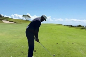 劳逸结合!詹姆斯今日与发小一同打高尔夫 享受户外&放松身心