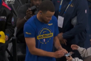 宠粉环节!库里赛前为客场的小球迷们签名💙