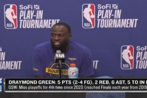 体育资讯4月18日讯 NBA附加赛,勇士96-111不敌太阳。赛季结束。赛后德雷蒙德·格林接受了媒体采访,以下为采访全文。