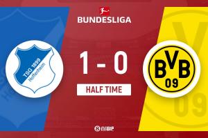 半场-多特0-1霍村 聚勒送点+伤退克拉马里奇点射科贝尔精彩扑救
