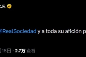 皇马官方写道:“祝贺皇家社会及其所有球迷夺得国王杯冠军。”