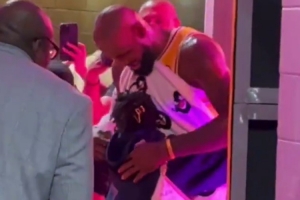 贴心老爸!詹姆斯赛后和女儿拥抱 用毛巾隔着以免朱莉被汗水弄湿