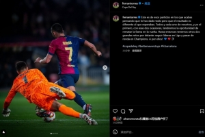 体育资讯2月26日讯 国王杯半决赛首回合,巴萨4-4遭马竞绝平,费兰错失两次绝佳进球机会。赛后,费兰更新社媒,鼓舞士气。