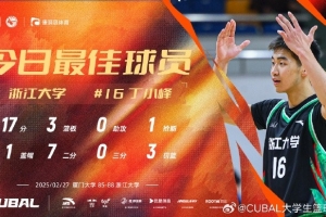 17分3篮板!CUBAL今日最佳球员:浙江大学大一新生丁小峰