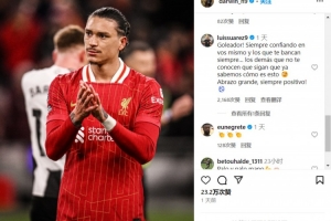 努涅斯在社交媒体上发布了“YNWA”的帖子,苏亚雷斯留言道:“射手一直都要相信自己,相信那些支持你的人,其他人并不了解你。继续前行,我们知道情况是什么样的!送你大大的拥抱,保持乐观!”