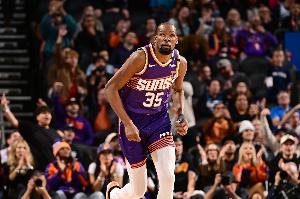 本场比赛,太阳球星杜兰特表现不错,场上打得很轻松进攻也很高效,在35分钟的时间里,投篮10中7,三分球2中2,罚球1中1,拿到17分2篮板6助攻3抢断的数据,正负值+22。