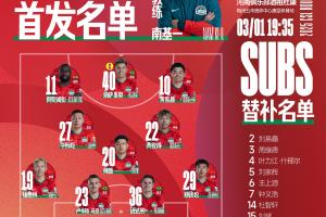 体育资讯03月01日讯 今晚19点35,中超第2轮河南客战梅州客家,赛前河南公布首发名单,外援前锋卡多索因伤缺席。