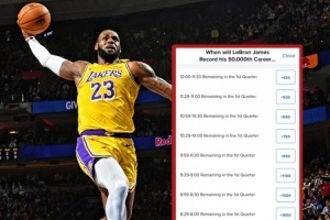 仅差1分!詹姆斯今日何时破五万分赔率:开场30秒内最被看好