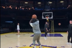 常规操作!詹姆斯赛前logo三分稳稳命中