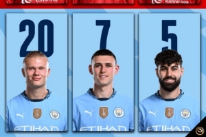 曼城:哈兰德20球,福登7球,格瓦迪奥尔5球