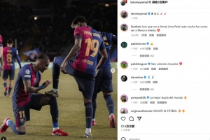亚马尔还通过社媒晒出自己的庆祝照,并配文:“bla bla”,似乎是在回击近期对他的质疑。