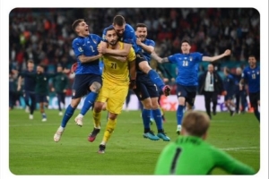 赛后,意大利国家队官推晒出了2020欧洲杯决赛多纳鲁马扑出决胜点球的瞬间,并写道:“有些事情永远都不会改变”。当时意大利队与东道主英格兰队在决赛战至点球大战,三狮军团第4、5顺位出场的桑乔和萨卡的点球都被多纳鲁马挡出,英格兰队无缘队史首座欧洲杯冠军。继那届欧洲杯之后,多纳鲁马再次给英格兰足球送上一记“重击”。