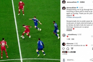 麦卡利斯特在社媒晒出一张面对巴黎3人合围的照片,配文写道:“很失望未能更进一步,但是该停止遗憾了,是时候在周末再次出发。感谢大家的支持。”