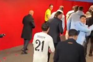 在球迷晒出的一段视频中,赛后皇马众将走回更衣室,塞巴略斯疑似伸出中指回应看台上的马竞球迷,并挥拳怒吼庆祝。