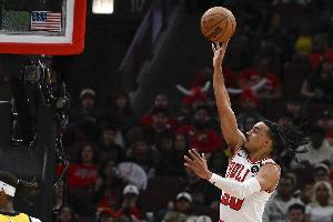 体育资讯3月16日讯 NBA常规赛,公牛半场65-60领先火箭。