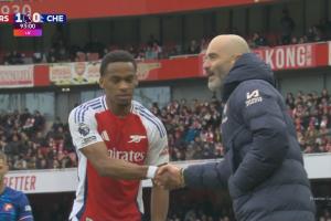 还聊上了?补时最后阶段廷伯与马雷斯卡在边线交谈,并友好握手