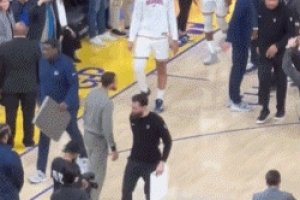 赛后,主帅科尔与巴特勒场边进行了互动,科尔脸上全是笑意。
