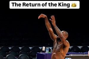 詹姆斯打趣道:“我把球鞋忘在更衣室了。我本应该昨天就打球的,我走出来,我很兴奋,但你们都已经开始了。”