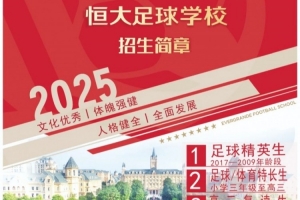 体育资讯3月26日讯 恒大足球学校官方发布2025全国招生简章,招生对象包括足球精英胜、足球/体育特长生等。