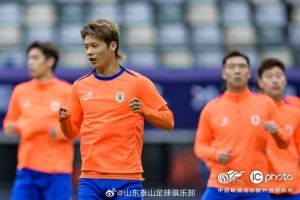 泰山队进行赛前踩场训练,积极备战明天与梅州客家队的中超联赛