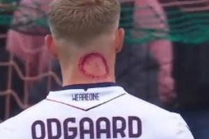 在3月29日博洛尼亚1-0击败威尼斯的比赛中,奥德加德被发现脖子后面有一块巨大的红斑。在比赛期间,社交媒体上充斥着球迷们的各种猜测,很多人担心他和僵尸发生冲突。
