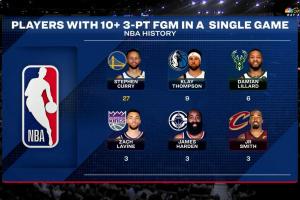 🐐库里生涯第27次单场命中10记三分!其余5位加起来才24次!
